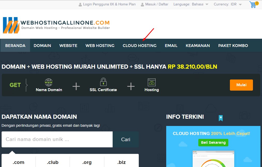 Pilih menu Cloud Hosting